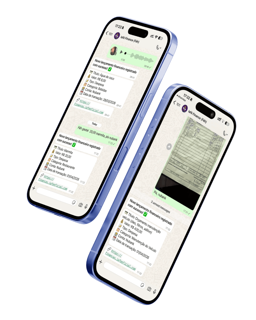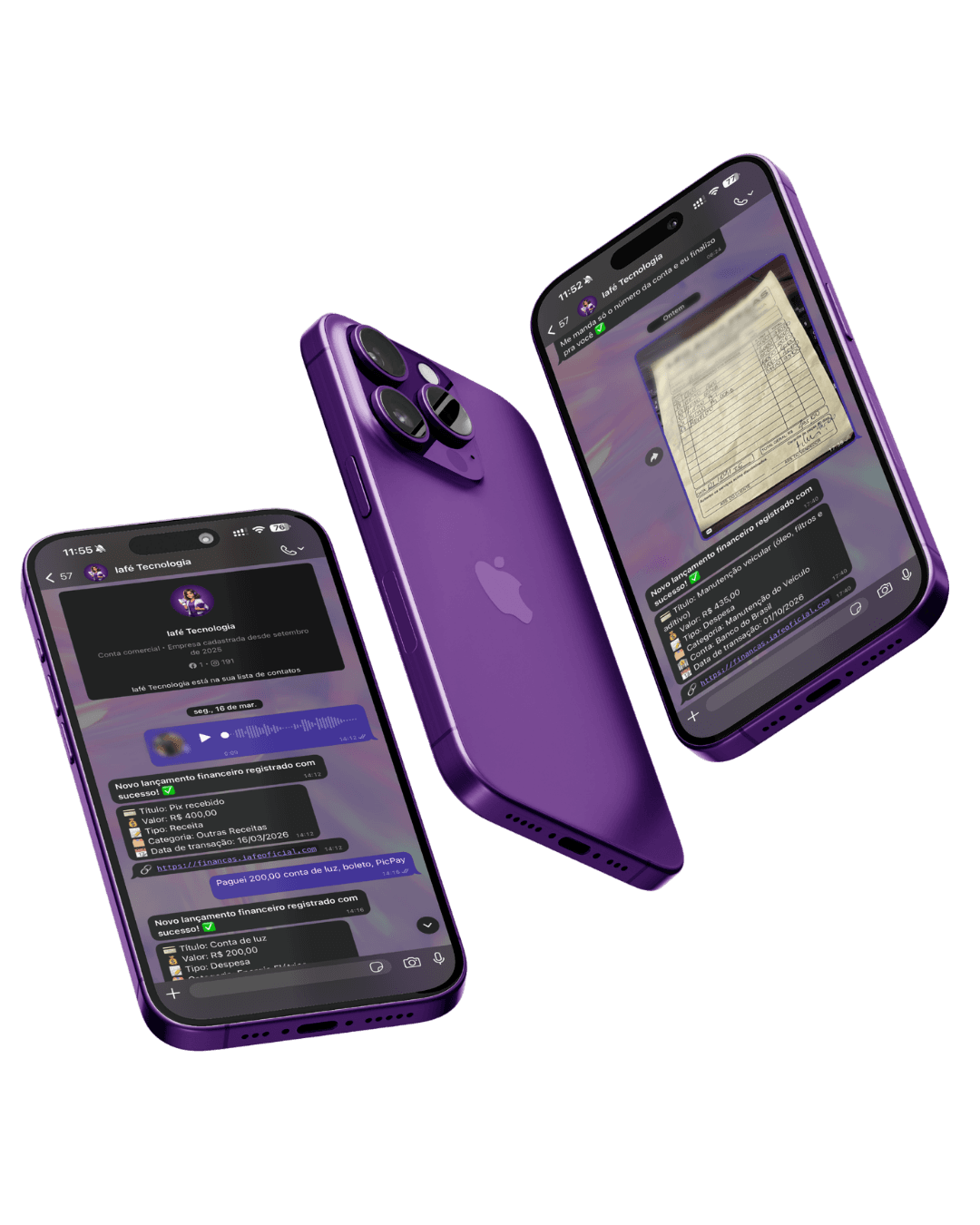 Com a IAFÉ Finance, você organiza seu dinheiro de forma simples, rápida e prática, inclusive pelo WhatsApp.